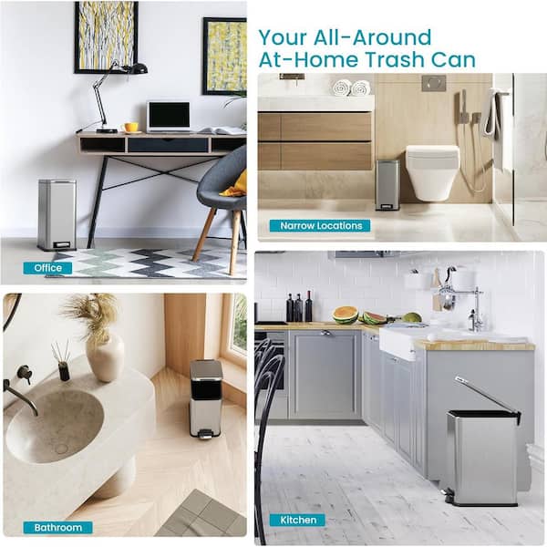 4.4 Gal. Stainless Steel Step-On Kitchen Trash Can with Soft Close Lid and Slim Shape