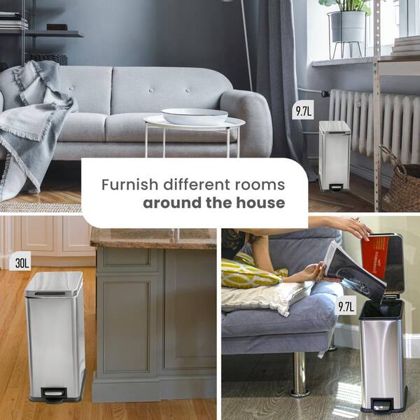 7.9 Gal. and 2.5 Gal. Stainless Steel Step-On Kitchen Household Trash Can Combo Value Set with Soft Close Lid