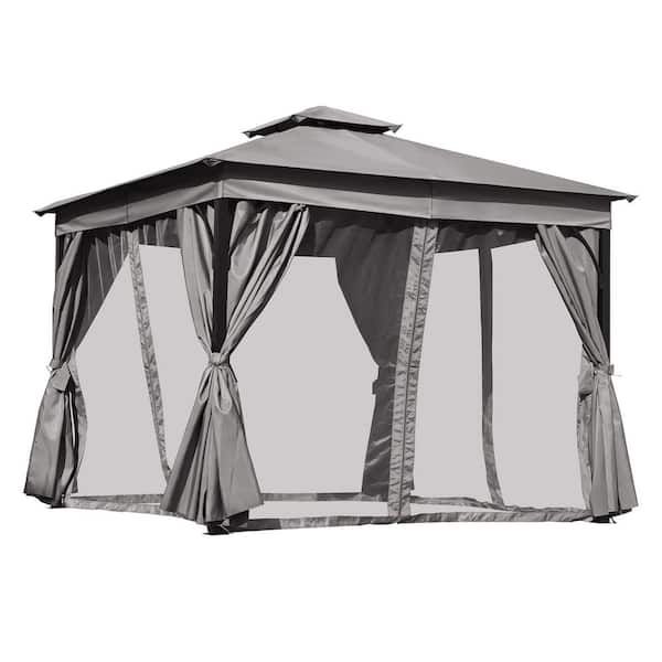 10 ft. x 10 ft. Gray Outdoor Gazebo Tent with Double Roofs and Mosquito Netting