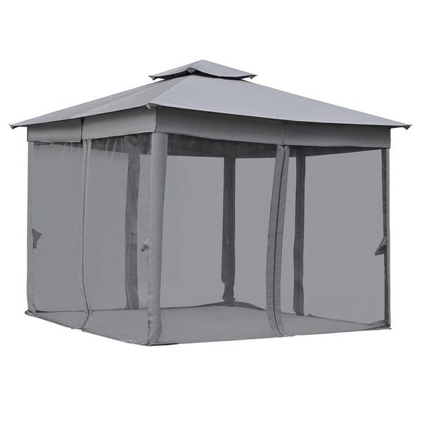10 ft. x 10 ft. Gray Outdoor Gazebo Tent with Double Roofs and Steel Frame