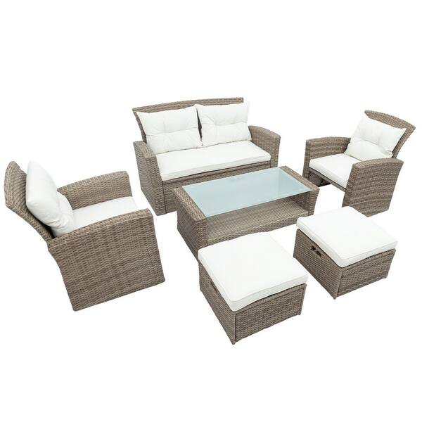 4-Piece Wicker Patio Conversation Set with Beige Cushions