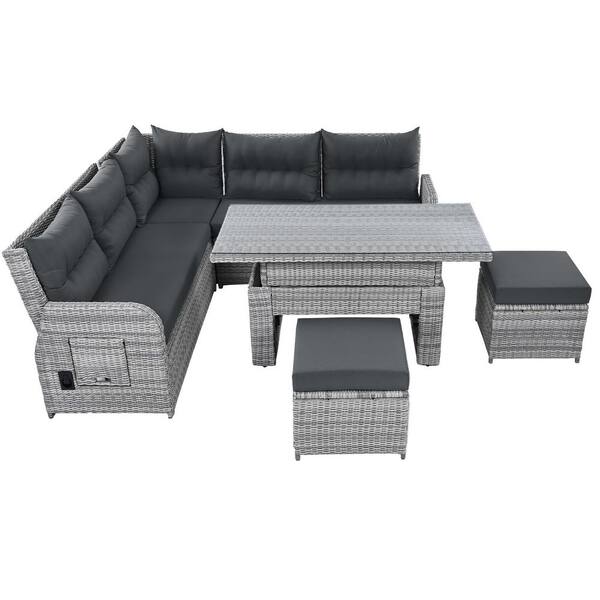 Gray Wicker Outdoor Sectional Set with Gray Cushions