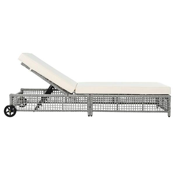 Grey Metal Outdoor Chaise Lounge with Beige Cushions and 5-Position Backrest
