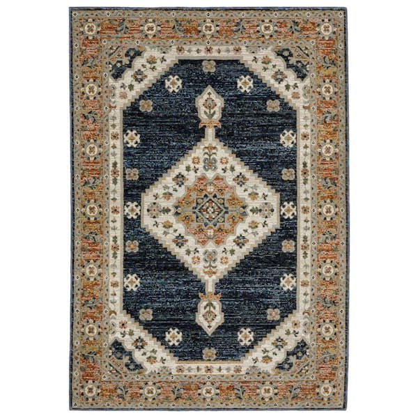 10 X 13 Blue, Orange Medallion Washable Area Rug Runner Rug