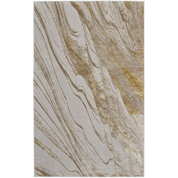 10 ft. x 13 ft. Ivory, Brown, Gold Abstract Area Rug
