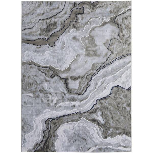 10 ft. x 14 ft. Ivory and Blue and Gray Abstract Area Rug