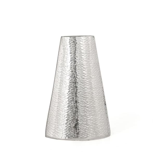 10 in. Silver Metal Cylinder Decorative Vase