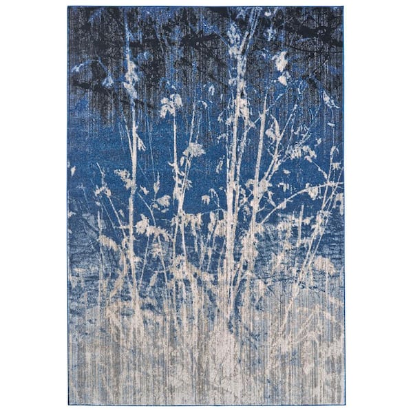 10 x 14 Gray, Black, Blue Abstract Area Rug