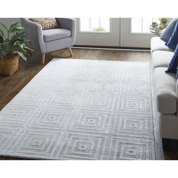 10 x 14 Silver, White Striped Area Rug