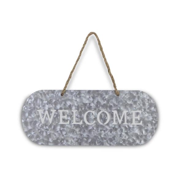 11 in. x 4.5 in. Grey Handcrafted Welcome Galvanized Metal Wall Art 1-Piece