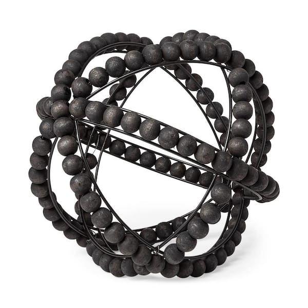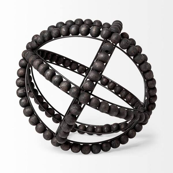 12 in. Black Black Wooden Bead and Metal Orb Sculpture