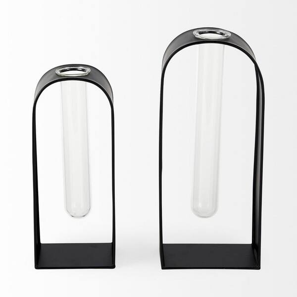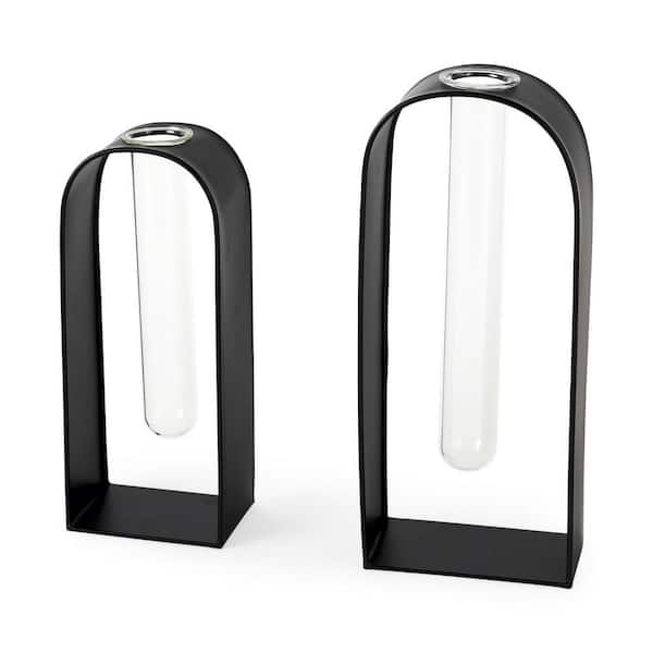 12 in. Black Metal Test Tube Geometric Decor (Set of 2)