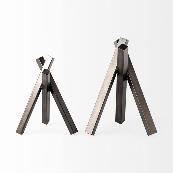 12 in. Grey Abstract Black Metal Geometric Decor Piece