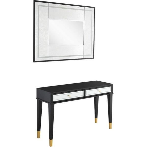 14.4 in. Black Rectangle MDF Console Table with Drawers