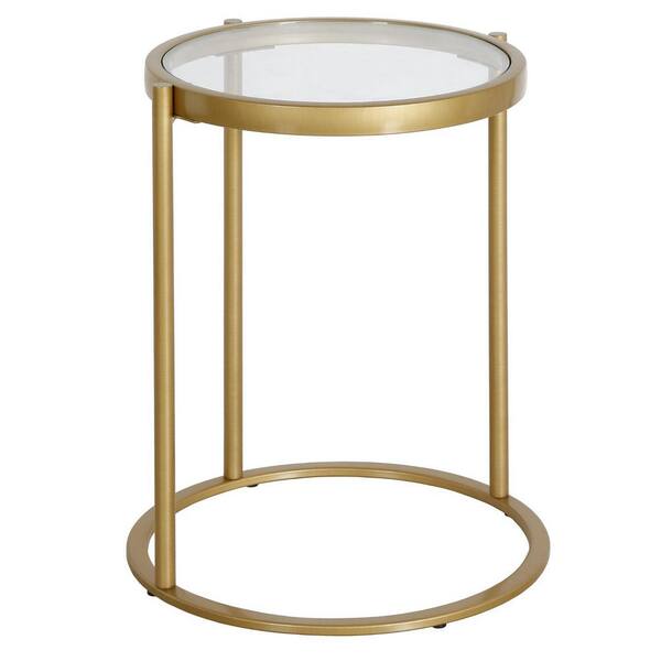 16 in. Brass Round Glass End Table