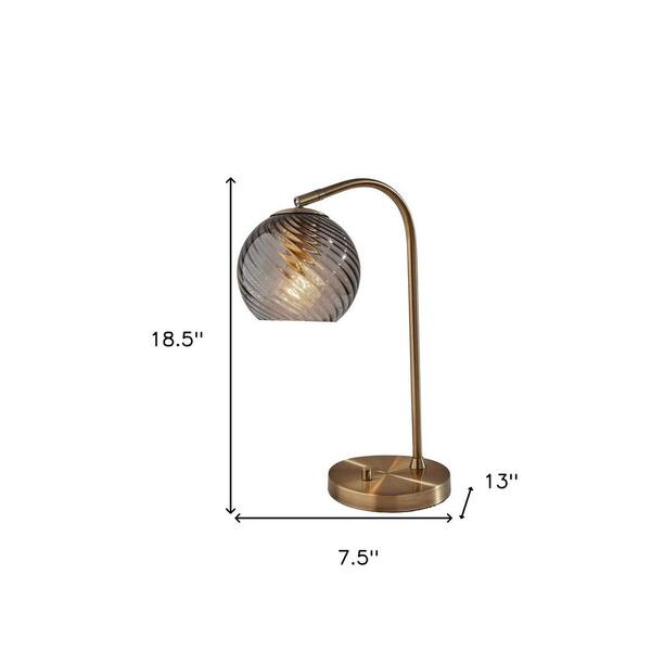 18.5 in. Gray Mid-Century Integrated LED Bedside Table Lamp with Gray Glass Shade