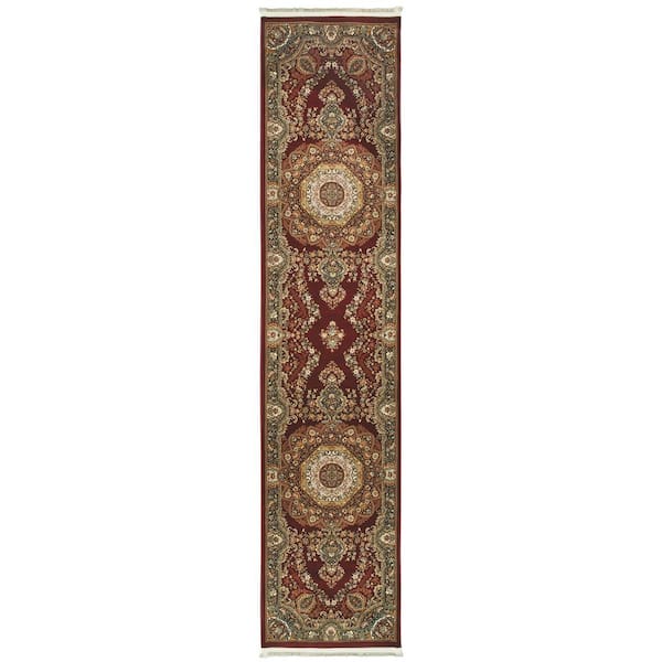 2 X 10 Red, Light Brown, Ivory Medallion Washable Area Rug Runner Rug