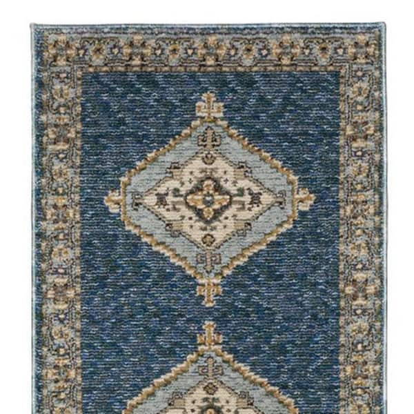 2 X 12 Blue, Gold Medallion Washable Area Rug Runner Rug