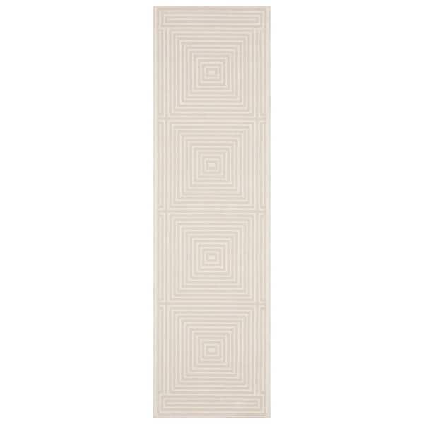 2 X 8 Beige Geometric Washable Area Rug Runner Rug
