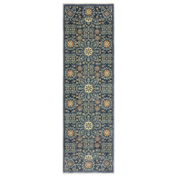 2 X 8 Blue, Rust Medallion Washable Area Rug Runner Rug