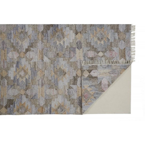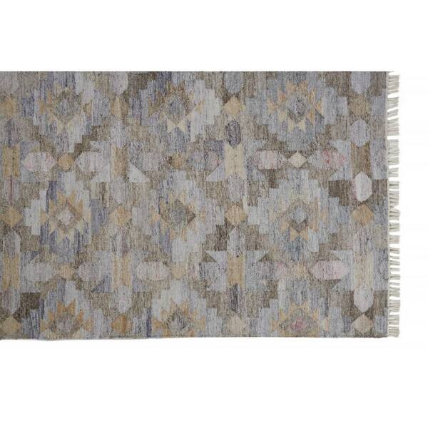 2 X 8 Gray, Blue Geometric Area Rug