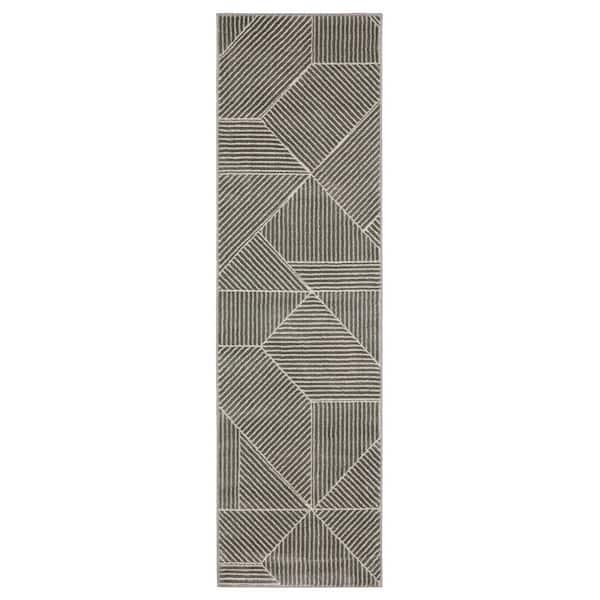 2 X 8 Gray Geometric Washable Area Rug Runner Rug