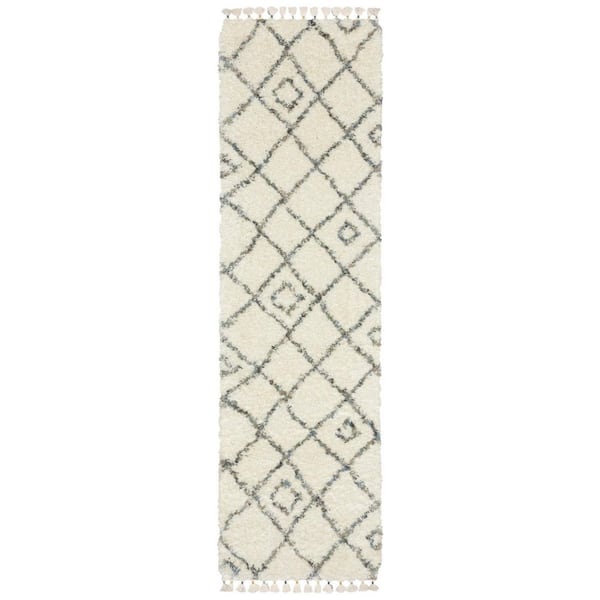 2 X 8 Ivory, Black, Tan Geometric Washable Area Rug Runner Rug