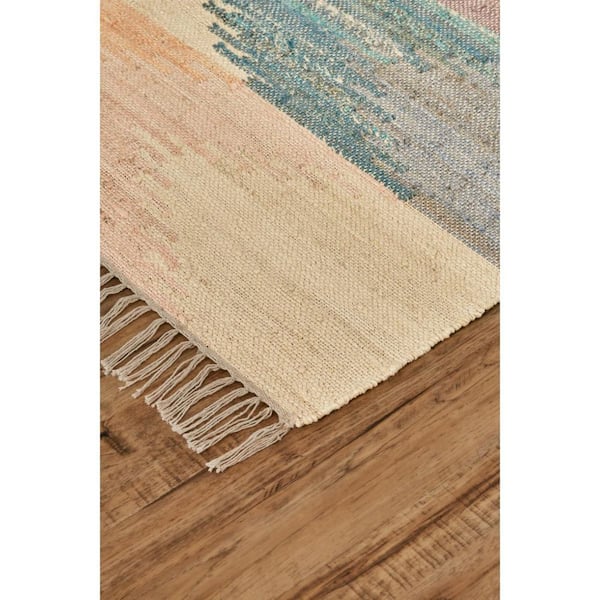 • Geometric design in tan blue and orange adds visual interest