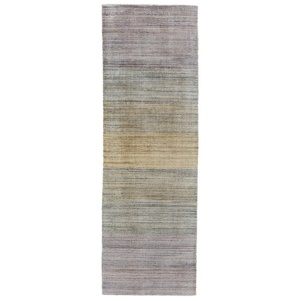 2 ft. x 10 ft. Beige and Purple Ombre Area Rug