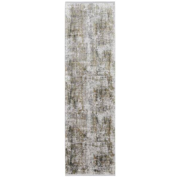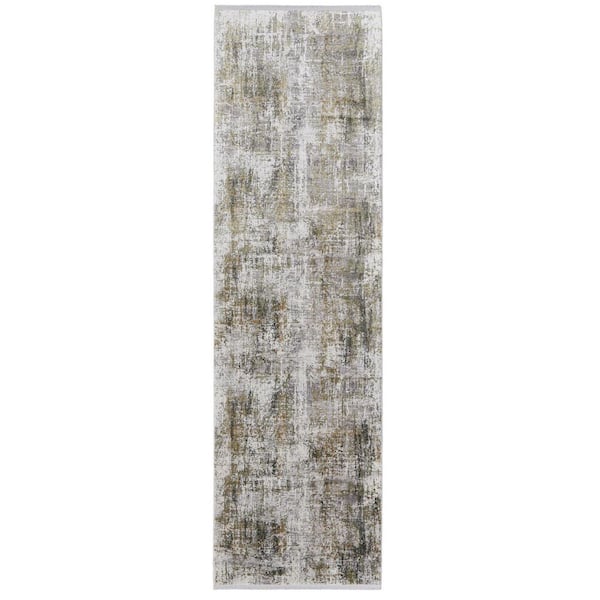 2 ft. x 10 ft. Gray and Ivory Abstract Area Rug