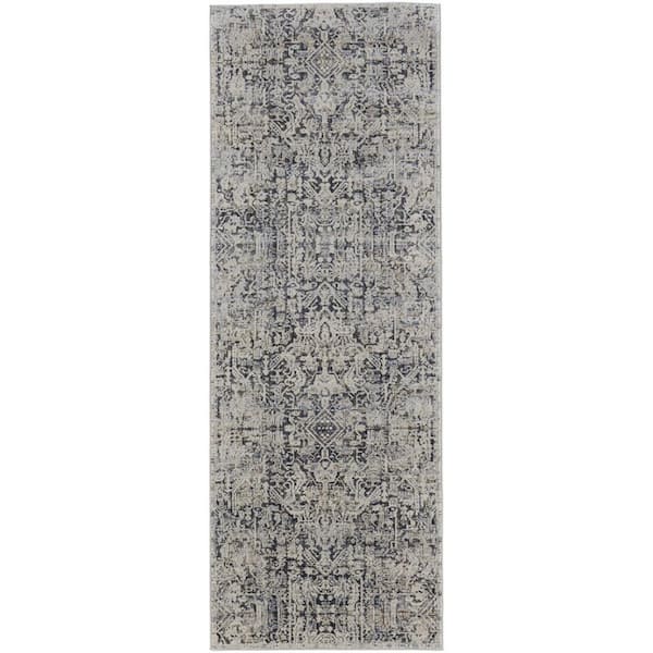 2 ft. x 10 ft. Ivory, Gray Abstract Runner Rug