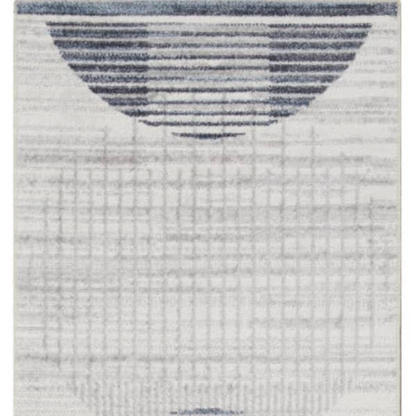 2 ft. x 12 ft. Blue And Ivory Geometric Washable Runner Rug