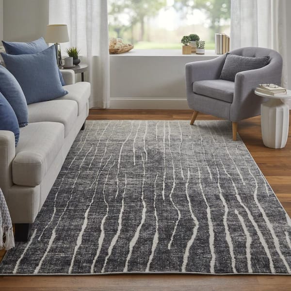 2 ft. x 3 ft. Black, Gray, Ivory Abstract Area Rug