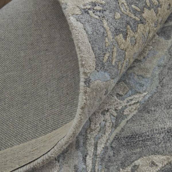 • Gray, tan and green abstract area rug with 1/2 inch thickness