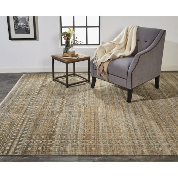 • Ivory, gold and tan area rug with 1/3 inch thickness