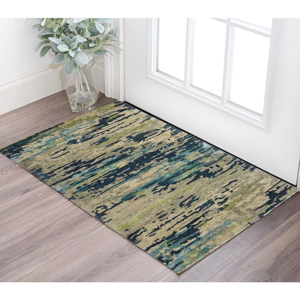2 ft. x 3 ft. Sand And Green Wool Abstract Hand Tufted Area Rug