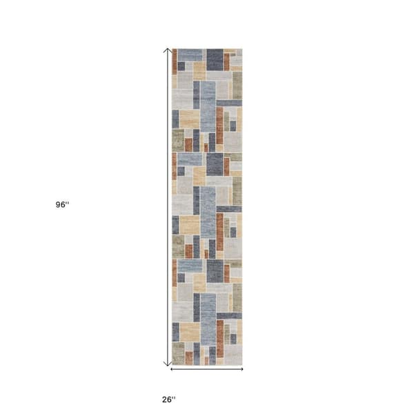 2 ft. x 8 Blue Geometric Washable Runner Area Rug