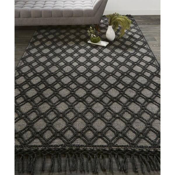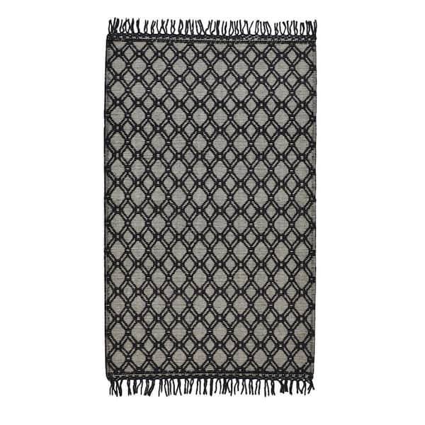 2 ft. x 8 ft. Black, Ivory Geometric Area Rug