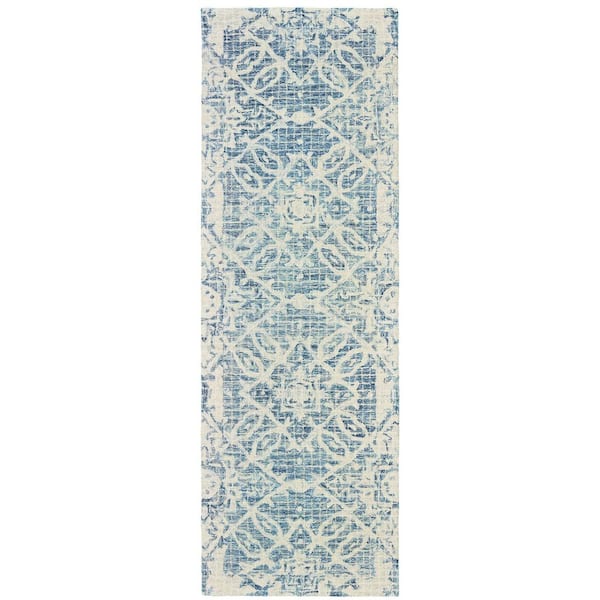2 ft. x 8 ft. Blue Geometric Washable Area Rug