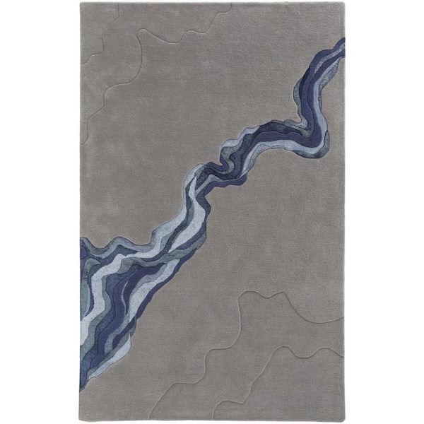 2 ft. x 8 ft. Blue, Gray Abstract Area Rug