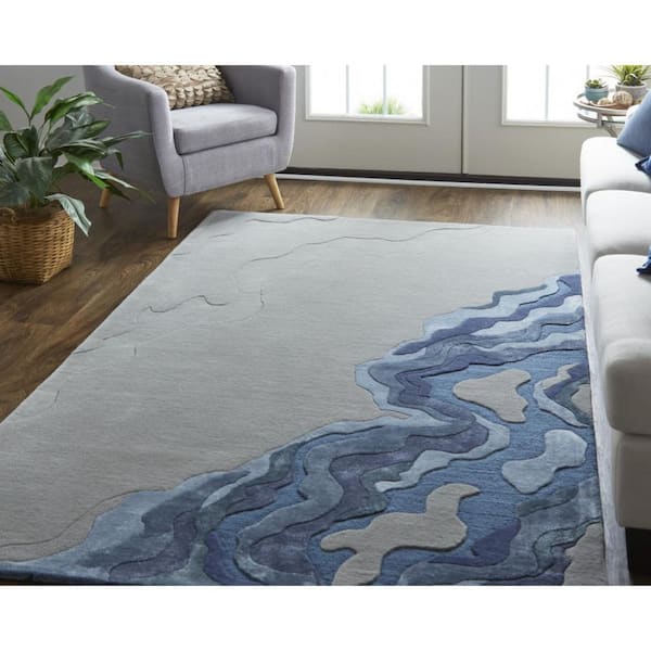 2 ft. x 8 ft. Blue, Gray Abstract Area Rug