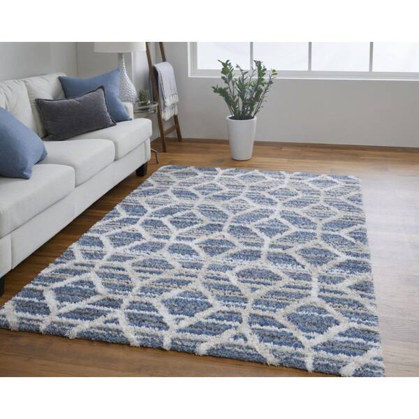 2 ft. x 8 ft. Blue, Ivory Geometric Area Rug