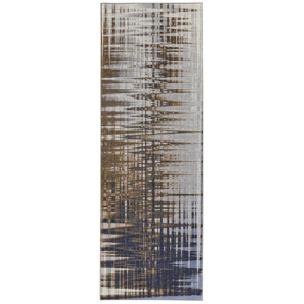 2 ft. x 8 ft. Blue and Orange and Gray Abstract Area Rug