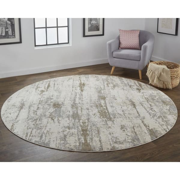 • Brown and ivory round rug with 1/2 inch thickness