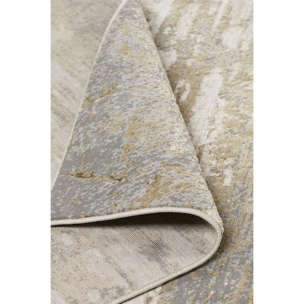 2 ft. x 8 ft. Gold, Ivory Abstract Area Rug