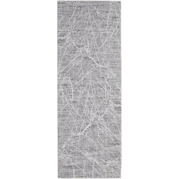 2 ft. x 8 ft. Gray Abstract Runner Rug