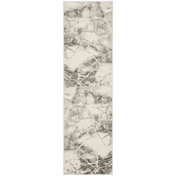 2 ft. x 8 ft. Gray Abstract Washable Area Rug