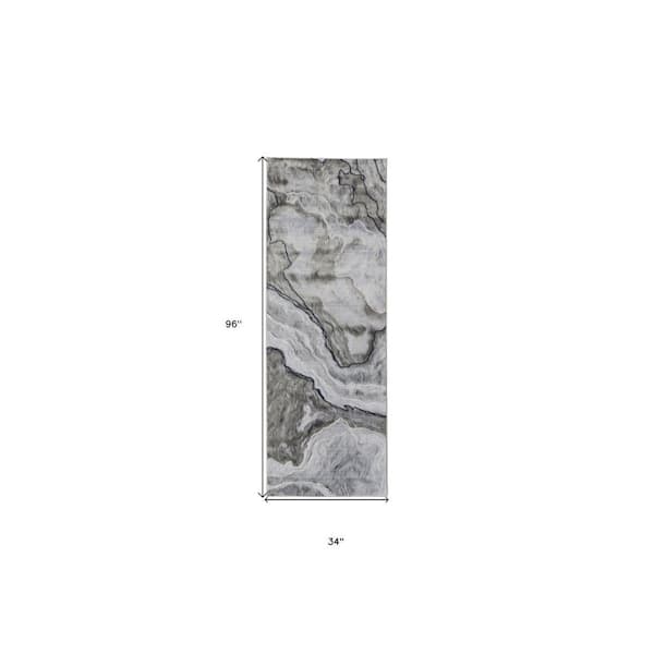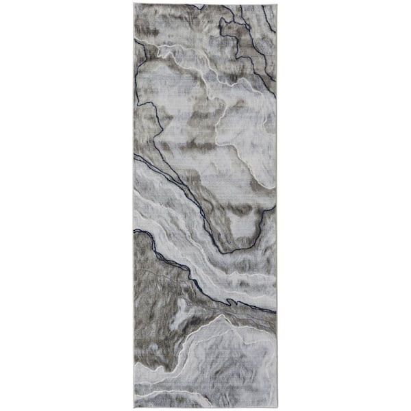 2 ft. x 8 ft. Gray, Blue Abstract Runner Rug