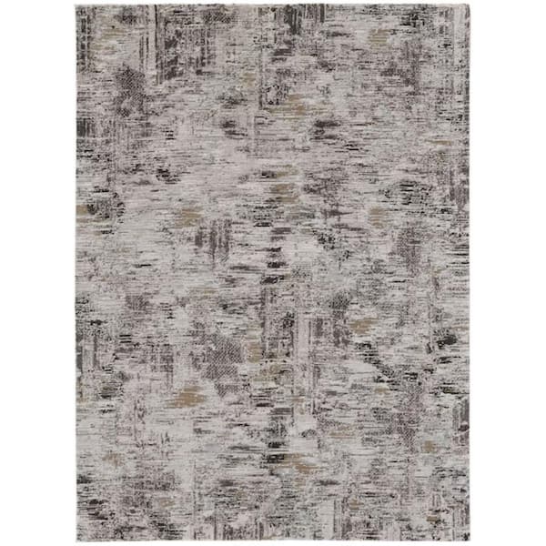 2 ft. x 8 ft. Gray, Ivory Abstract Area Rug