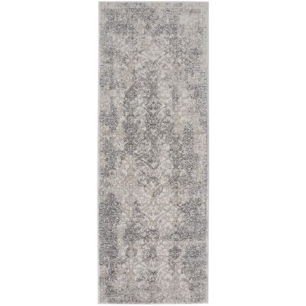 2 ft. x 8 ft. Gray, Ivory Abstract Runner Rug
